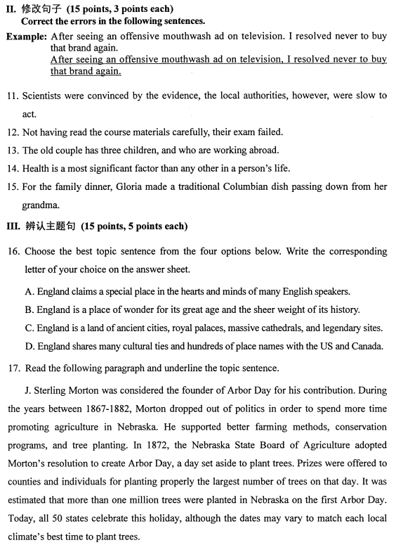 1.请考生按规定用笔将所有试题的答案写在答题纸上。