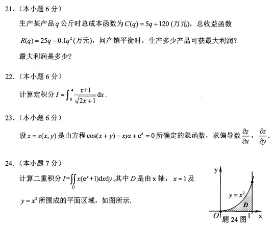 全国2021年10月高等教育自学考试高等数学(一)试题